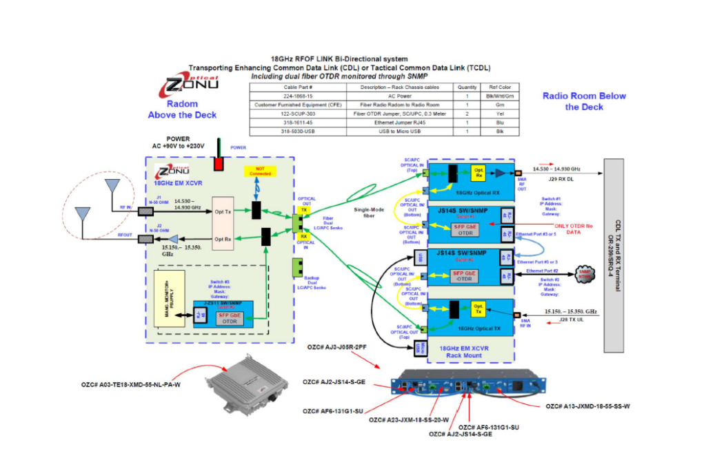 Optical Zonu fiberoptic delay lines incorporate wideband lasers and photodiodes (fiberoptic transmitters and receivers) designed for linear analog modulation. Fiberoptics provide high bandwidth and sensitivity to facilitate long delays, and wide spur free dynamic range for operation over a variety of loss budgets. The basic advantage of a fiberoptic delay line is that long lengths