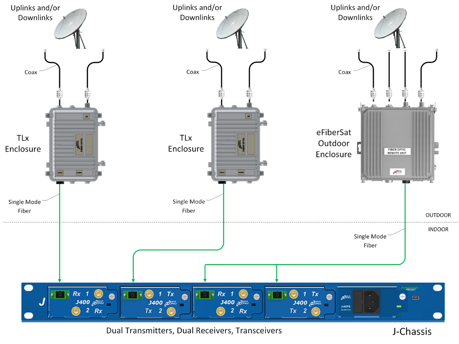 • 30 MHz to 3 GHz Fiber Optic Transport Between Satcom Modem and Outdoor Unit (4 GHz and 6 GHz Bandwidths Available)