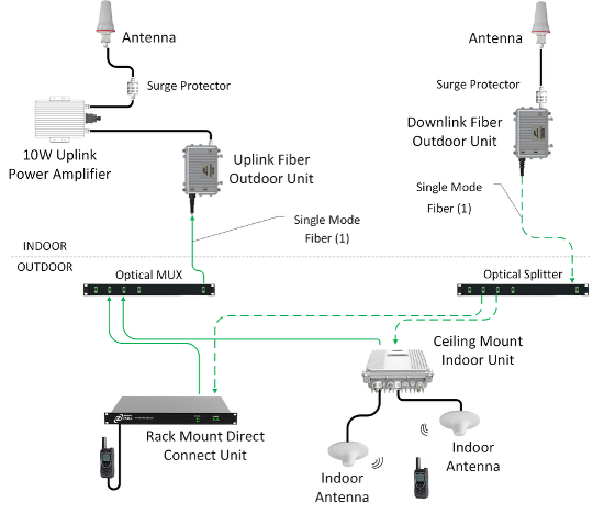 • Ceiling Mount Indoor Termination Supports Re-Radiating Indoor Antennas