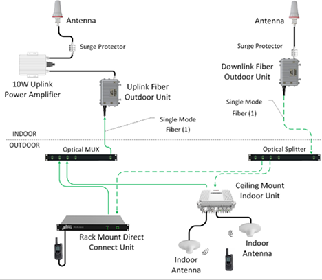 - Fiber Cabling Supports Location of Indoor Equipment up to 1 km Away From Outdoor Line-of-Sight Antennas
